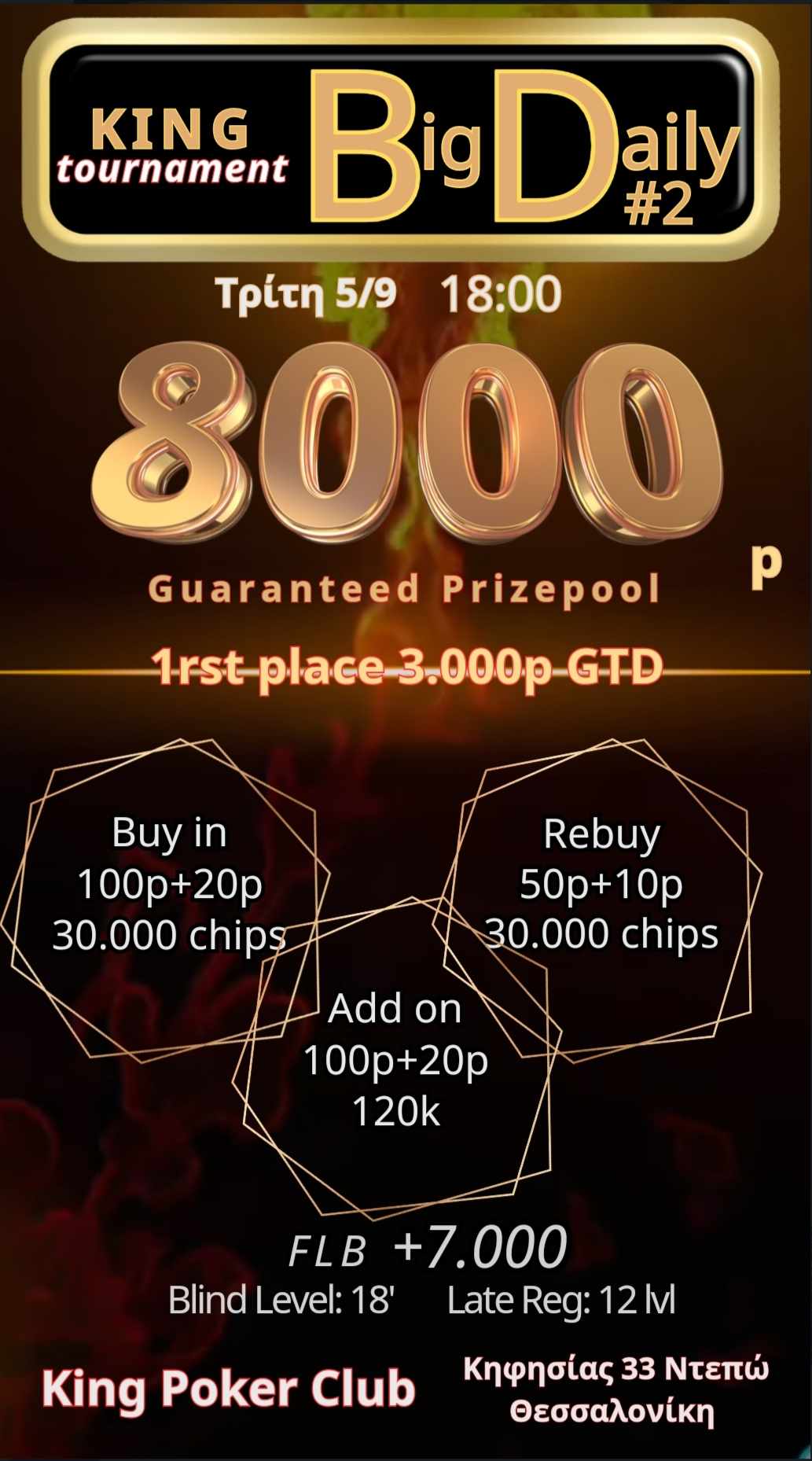 Την επόμενη Τρίτη εξάλλου θα διεξαχθεί το Big Daily #2 με 8.000p gtd!