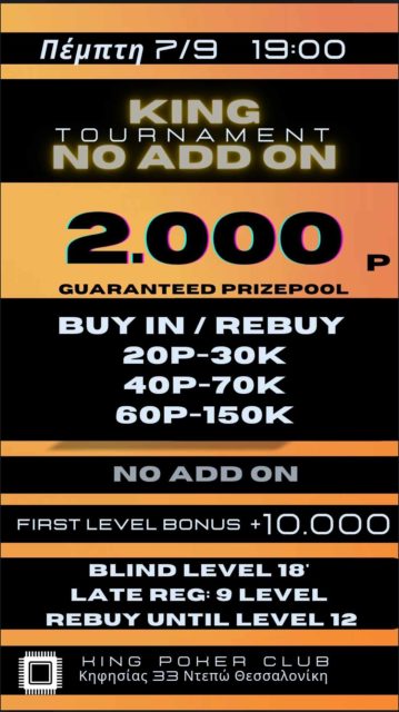 Κing: Heads-up deal χθες, στις 19:00 το King NO addon με 2.000p gtd!