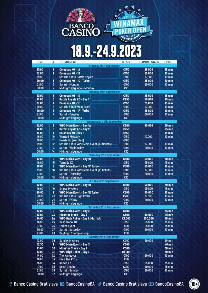 Στο τέλος του άρθρου θα βρείτε ολοκληρωμένο το πρόγραμμα του Winamax Poker Open.