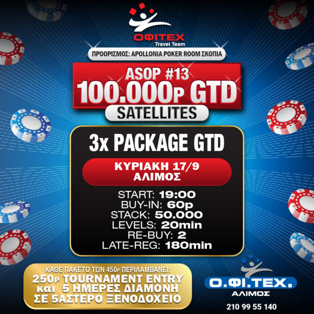 Kάθε πακέτο των 450p περιλαμβάνει 250p tournament entry και πενθήμερη διαμονή σε πεντάστερο ξενοδοχείο