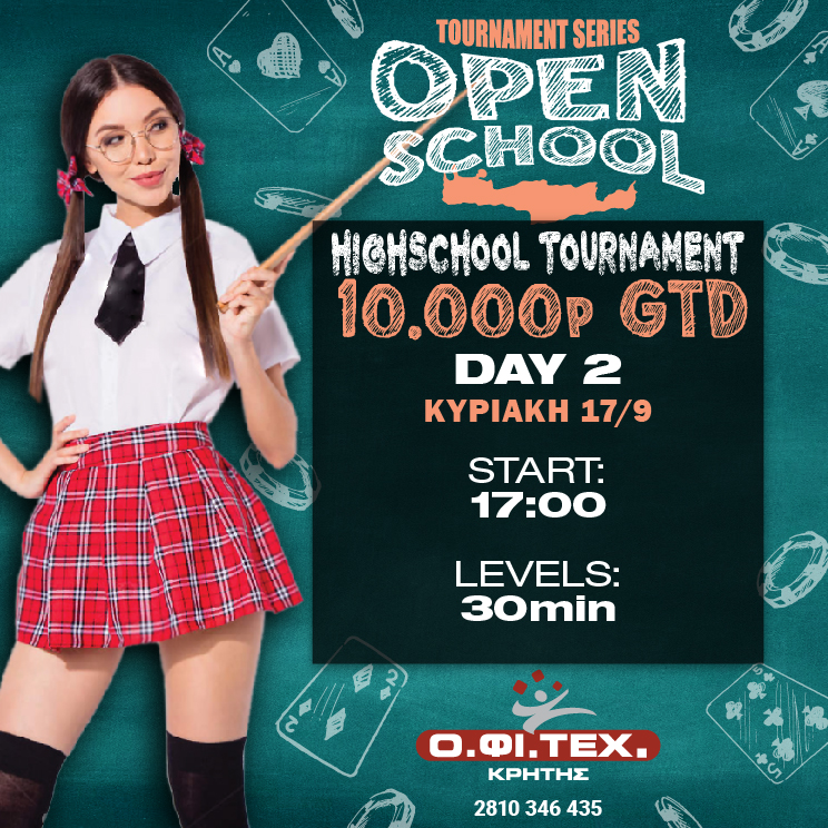 και τη Day 2 του High School (10.000p gtd) στο Ηράκλειο Κρήτης