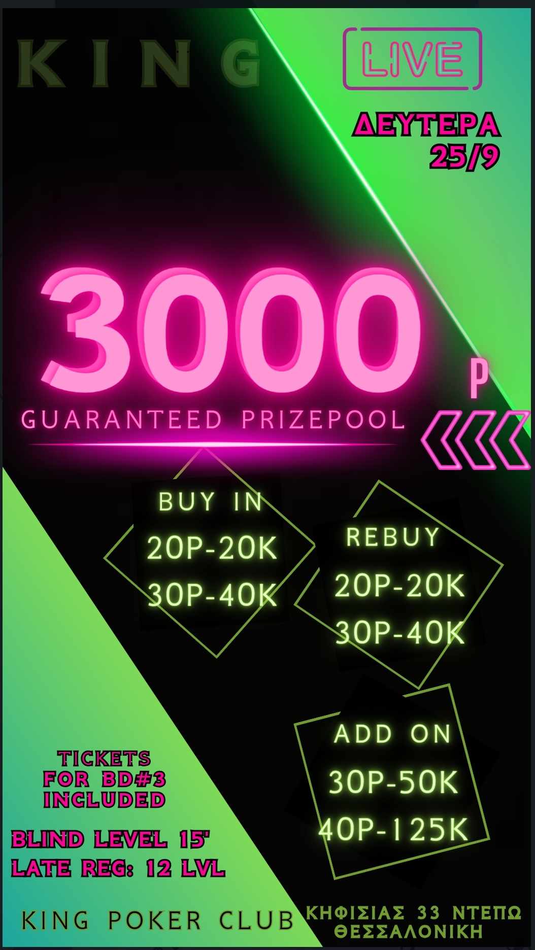 Aνοικτές εγγραφές και απεριόριστα rebuys για τα πρώτα δώδεκα 15λεπτα levels και παράλληλα ring games στις δύο δημοφιλέστερες παραλλαγές!