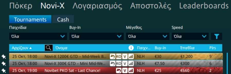 Μια ώρα νωρίτερα και τα καθιερωμένα Novi-X της Τετάρτης, αποκλειστικά για τους Έλληνες παίκτες!