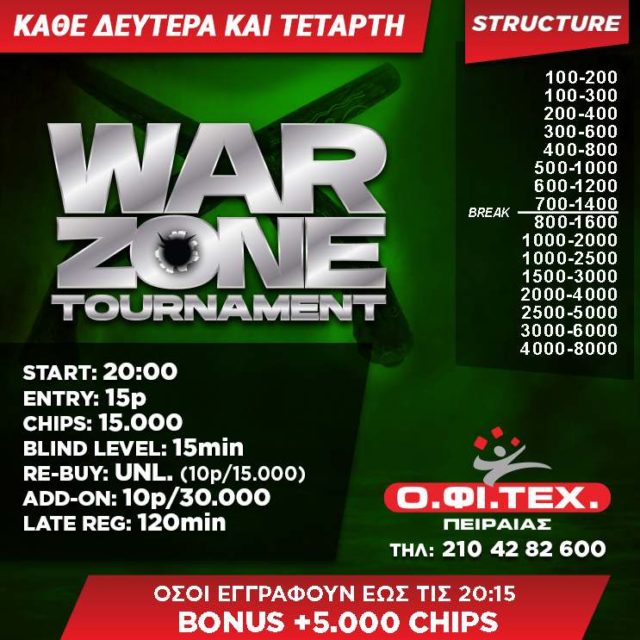 το freeroll (200p gtd) και το War Zone στον Πειραιά