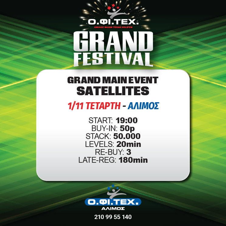 Το πρώτο flight μάλιστα του Grand main event για πρώτη φορά θα διεξαχθεί σε… διπλό ταμπλό (Αθήνα και Θεσσαλονίκη) με όσους προκριθούν να συνεχίζουν στη Day 2 του Σαββάτου.