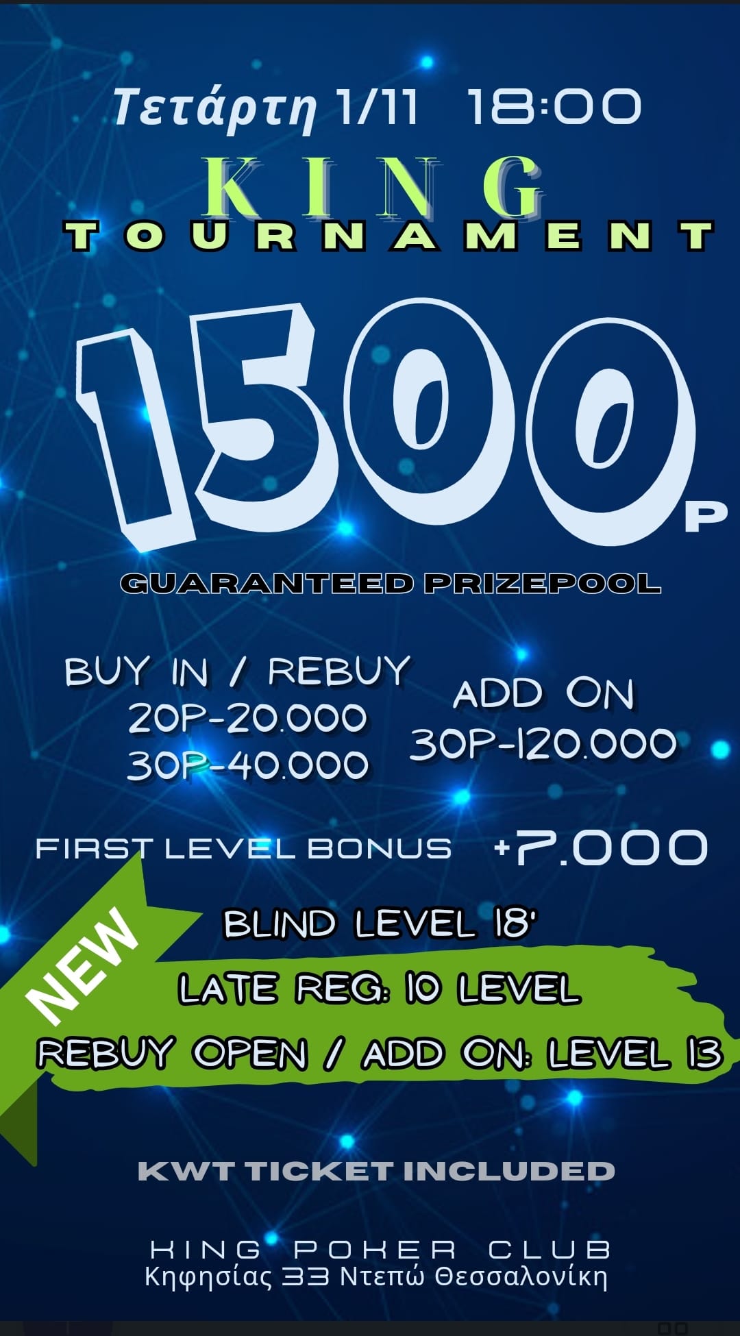 Δικαίωμα για rebuy (20p-30.000) στα πρώτα 13 levels