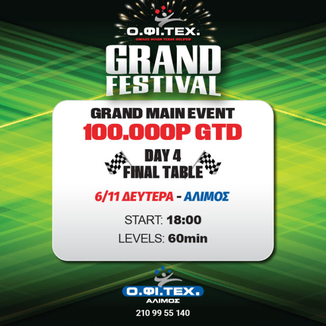 Στις 18:00 το final table του Grand main event (100.000p gtd)