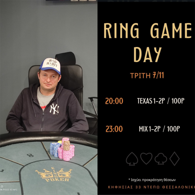Bραδιά αφιερωμένη στα ring games η σημερινή με 1p/2p Texas tables ν” ανοίγουν στις 20:00 και 1p/2p mix tables στις 23:00.