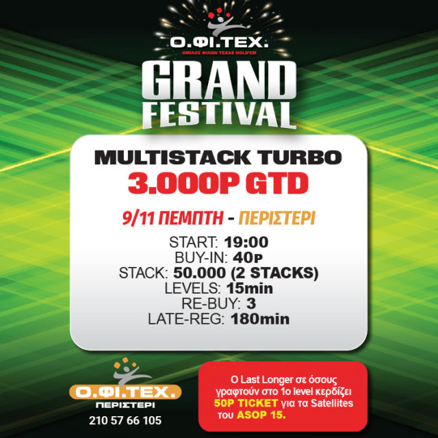 Στην αίθουσα του Περιστερίου θα φιλοξενηθεί το σημερινό special event του Grand Festival με το Multistack να… χαρίζει τουλάχιστον 3.000p!