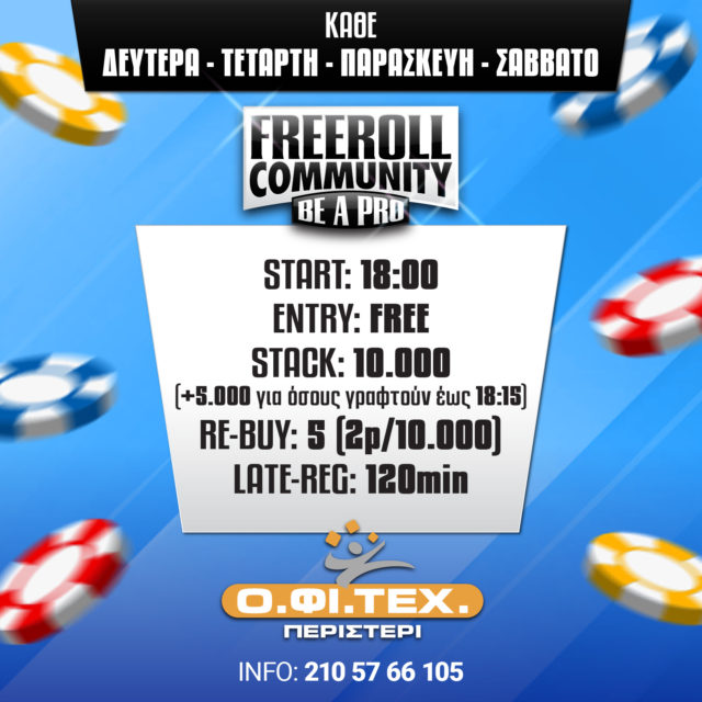 Στις 18:00 το freeroll Community Be a pro