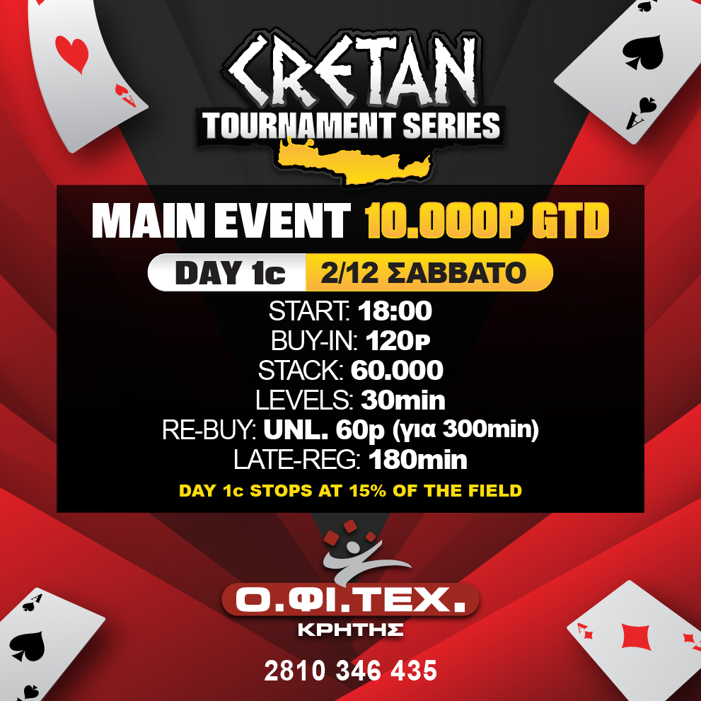και τη Day 1c του Cretan main event (10.000p gt) στο Ηράκλειο Κρήτης