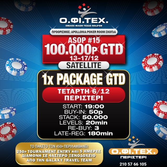 Mε τo 1-2 από Χρήστο Σταυρόπουλο και Κώστα Τανούση ολοκληρώθηκε το Monsterstack του Αμαρουσίου και σήμερα ξεχωρίζουν η πρόκληση της Τετάρτης στον Άλιμο (3.000p gtd) αλλά κι ένας προκριματικός με πακέτο gtd για το επερχόμενο ASOP #15 του Apollonia!