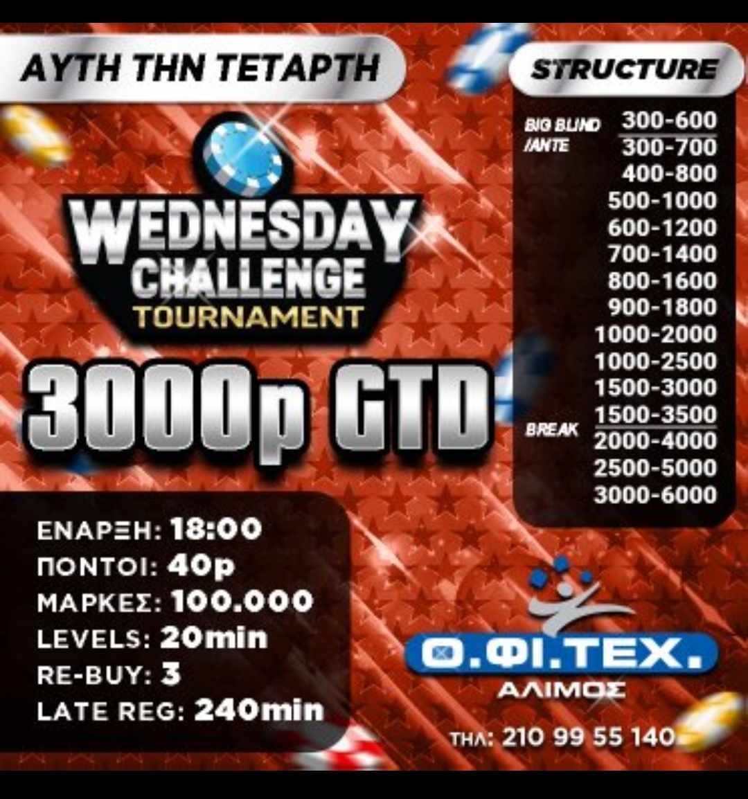 Στις 18:00 το Wednesday Challenge (3.000p gtd)