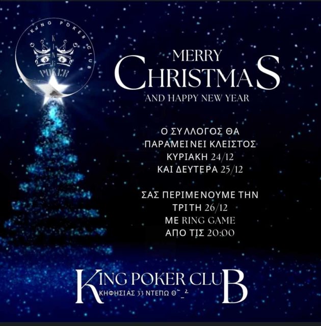 Ο σύλλογος θα παραμείνει κλειστός Κυριακή/Δευτέρα και θ” ανοίξει εκ νέου την Τρίτη, αποκλειστικά με ring games από τις 20:00.