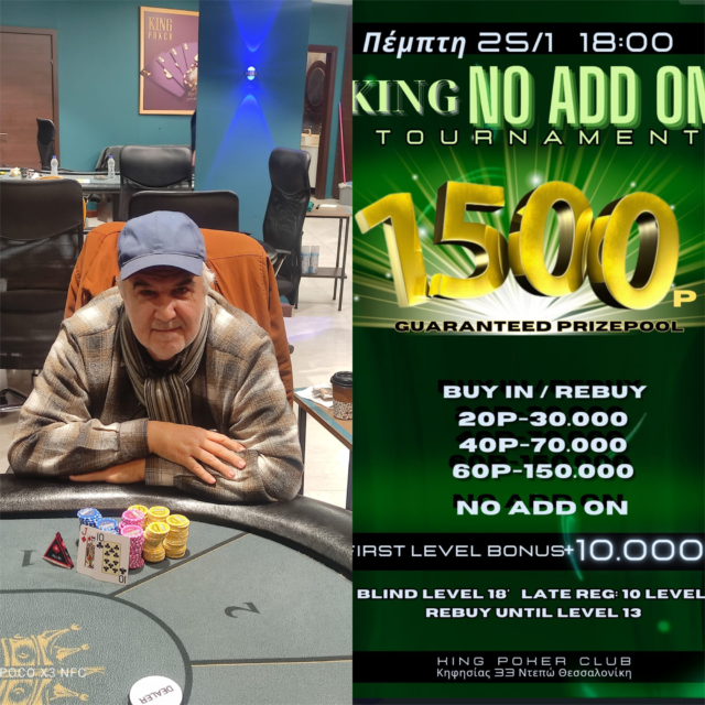 Το καθιερωμένο No Addon με 1.500p gtd στις 18:00 με εγγραφές για 10 levels και rebuys για 13 levels.