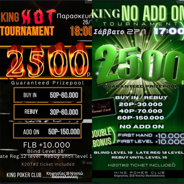 Παρασκευή και Σάββατο με παρόμοιο gtd (2.500p) και δύο super τουρνουά που ξεκινούν στις 18:00 και 17:00 αντίστοιχα!
