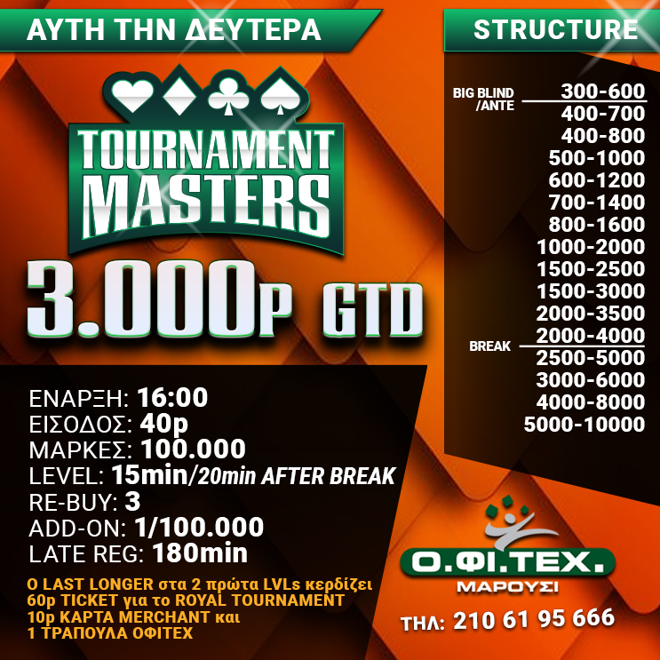 το Tournament Masters (3.000p gtd) στο Mαρούσι