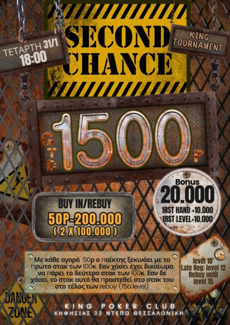 Ένα νέο πρωτοποριακό τουρνουά κάνει πρεμιέρα απόψε στις 18:00 στο King με διπλό stack (200.000), διπλό bonus (20.000) και 1.500p gtd!