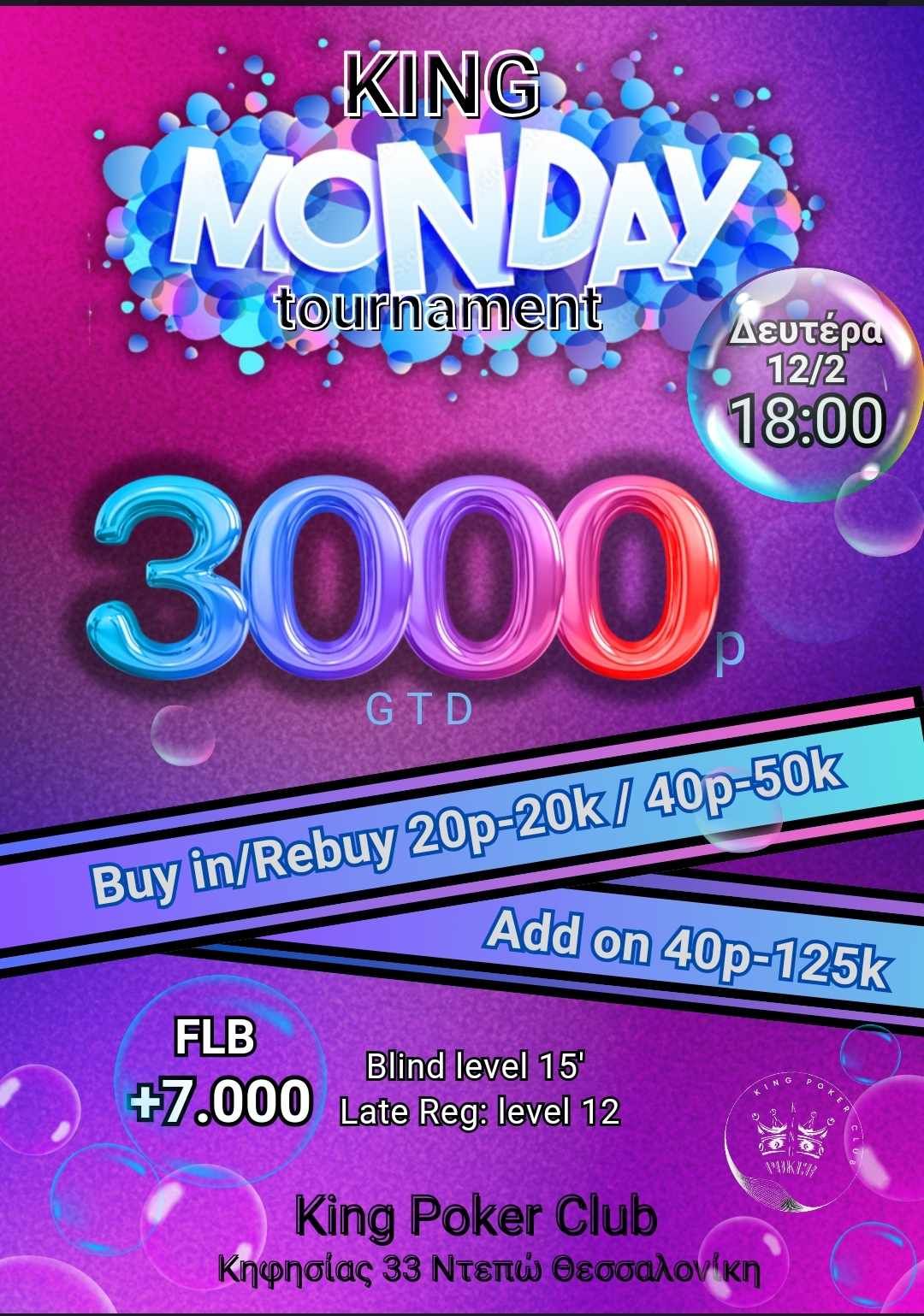 King: Στις 18:00 το 20p NLHE με 3.000p gtd