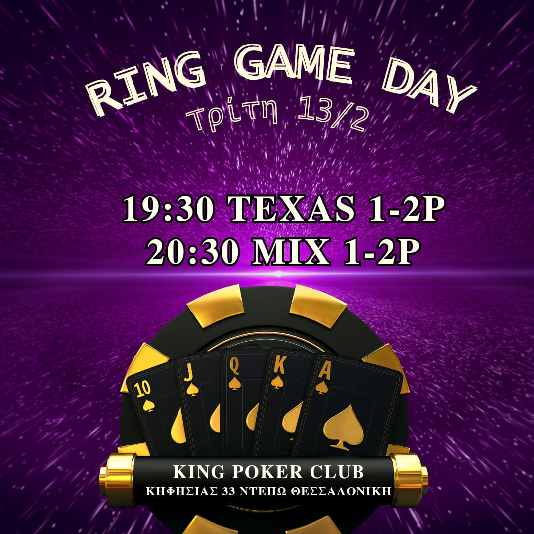 Bραδιά αφιερωμένη στα ring games η σημερινή με 1p/2p Τexas από τις 19:30 και 1p/2p mix από τις 20:30.