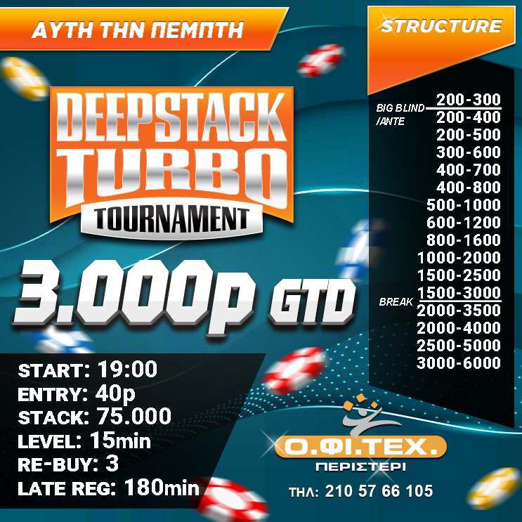 Στις 19:00 το Deepstack Turbo (3.000p gtd)