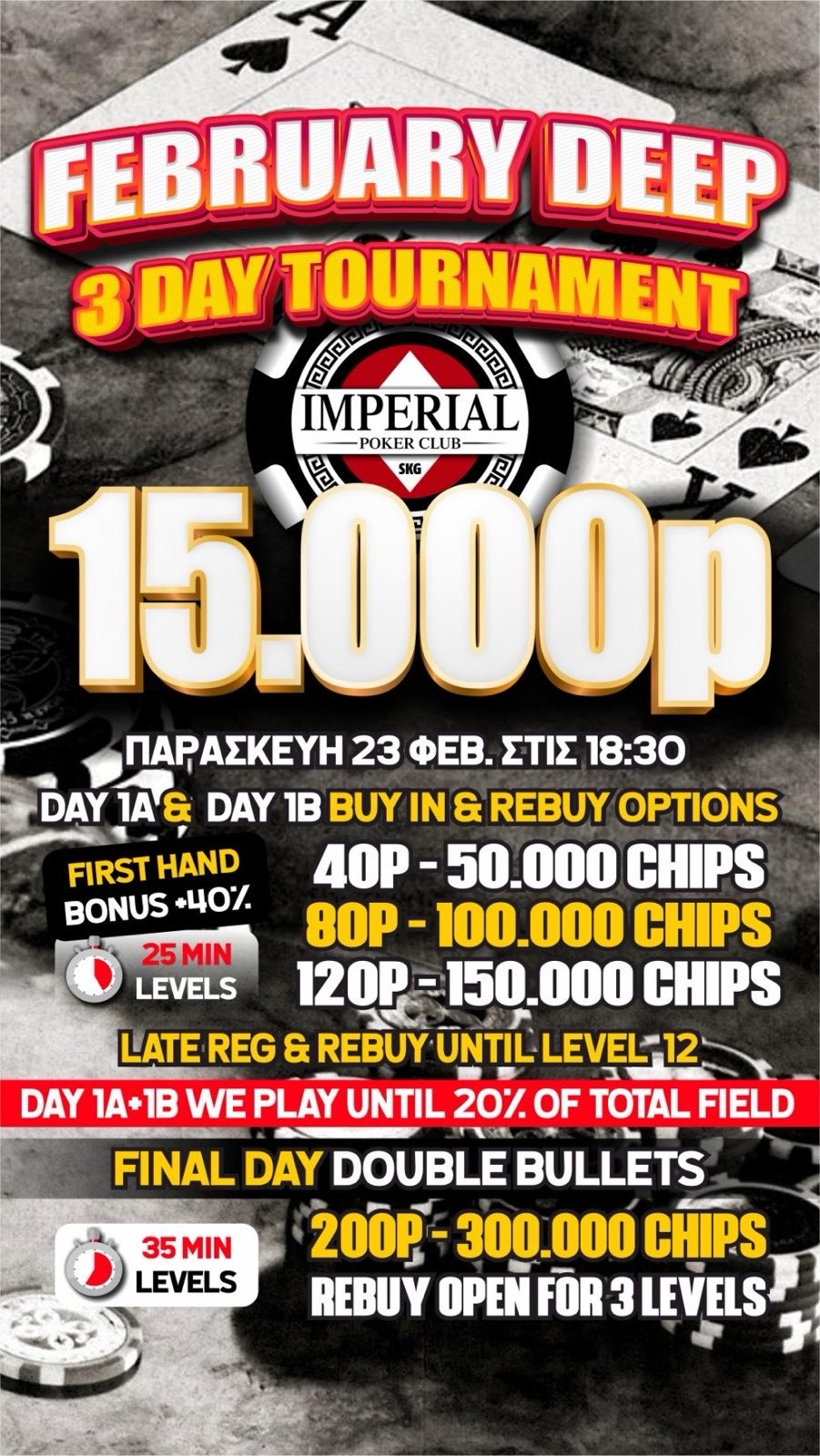 Σήμερα στις 18:30 θα διεξαχθεί η Day 1b αποκλειστικά στο Imperial της Θεσσαλονίκης, με το gtd των 15.000p να γκρεμίζεται από την έναρξη!