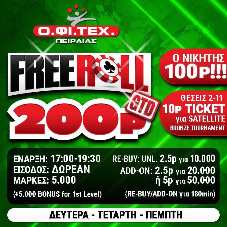 το freeroll (200p gtd) και το satellite για το Bronze tour στον Πειραιά