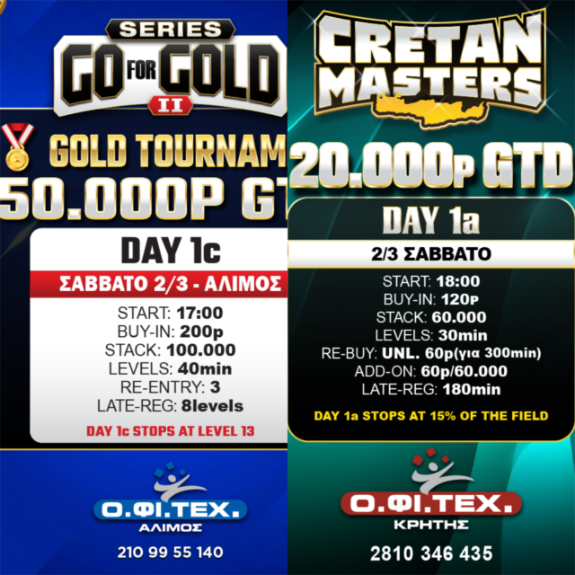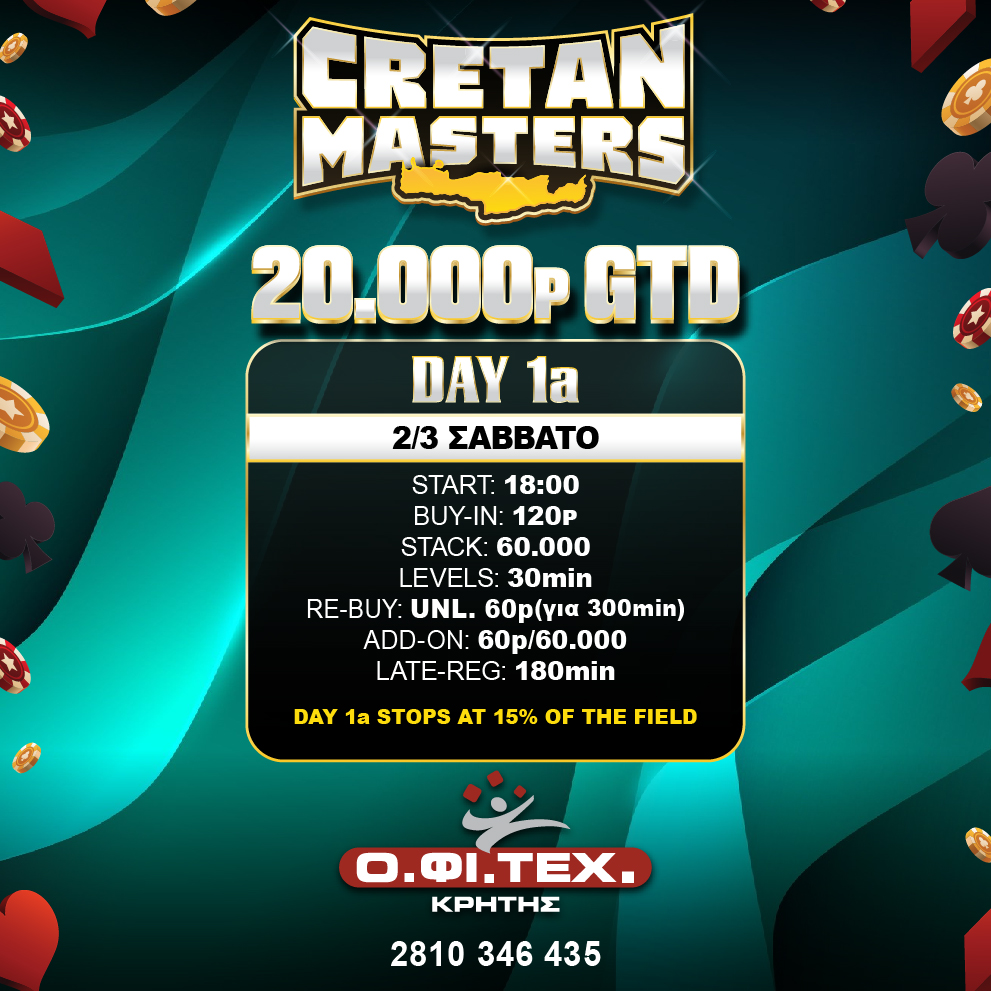 και τη Day 1a του Cretan Masters (20.000p gtd) στο Ηράκλειο Κρήτης