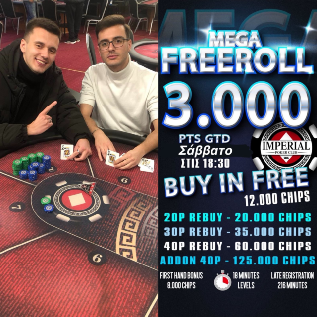 Το σαββατόβραδο σας περιμένει ένα MEGA freeroll με rebuys από μόλις 20p και τουλάχιστον 3.000p για τους παίκτες!