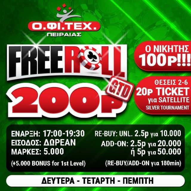 το freeroll (200p gtd) και το Omaha Button Choice 4-5-6 στον Πειραιά