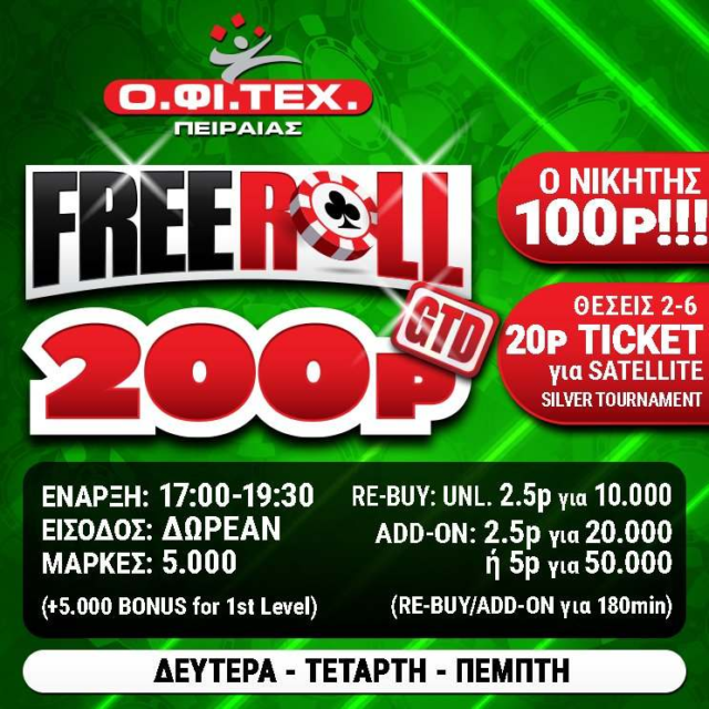 το freeroll (200p gtd) και το satellite στον Πειραιά