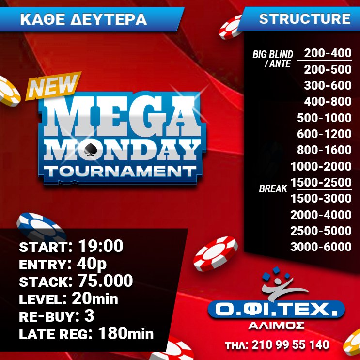 Καθυστερημένες εγγραφές και δικαίωμα για 3 rebuys τα πρώτα 180 λεπτά