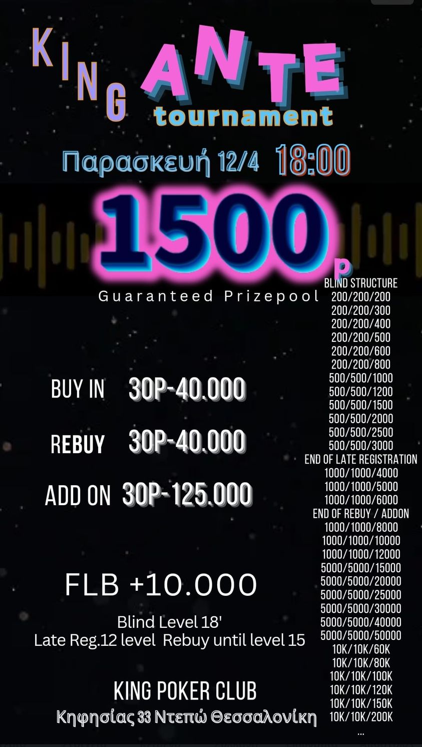Δώστε βάση στο νέο structure καθώς τα blinds παραμένουν σταθερά κάθε 6 levels και το μόνο που αυξάνεται είναι το ante.
