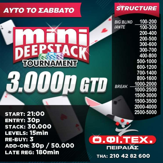 το Mini Deepstack (3.000p gtd) στον Πειραιά