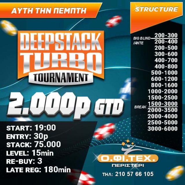 Στις 19:00 το Deepstack Turbo (2.000p gtd)