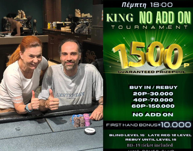 Σήμερα στις 18:00 σας περιμένει το δημοφιλές No Addon με τρεις επιλογές για buy-in και 1.500p gtd.
