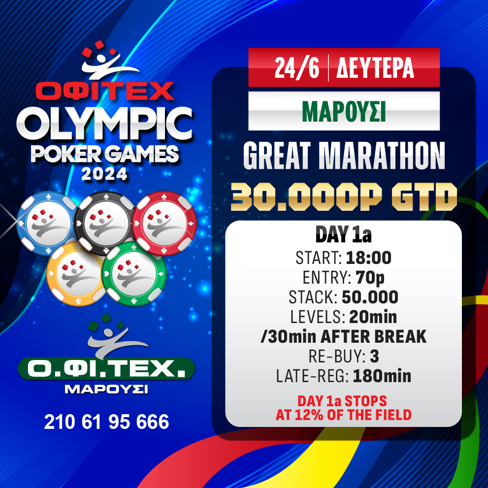 O.ΦΙ.ΤΕΧ.: Πρεμιέρα για Olympic poker games με Marathon (30.000p gtd)