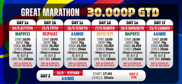 Στις 18:00 η Day 1a του Great Marathon (30.000p gtd)