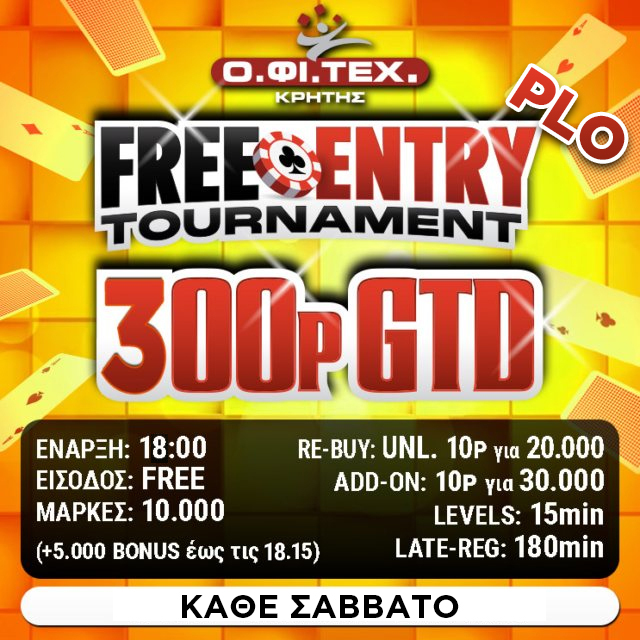 Στις 18:00 το PLO free entry (300p gtd)