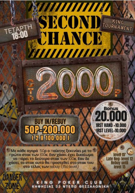 Το Second Chance επιστρέφει στις 18:00 στο King με διπλό stack (200.000), διπλό bonus (20.000) και 2.000p gtd.