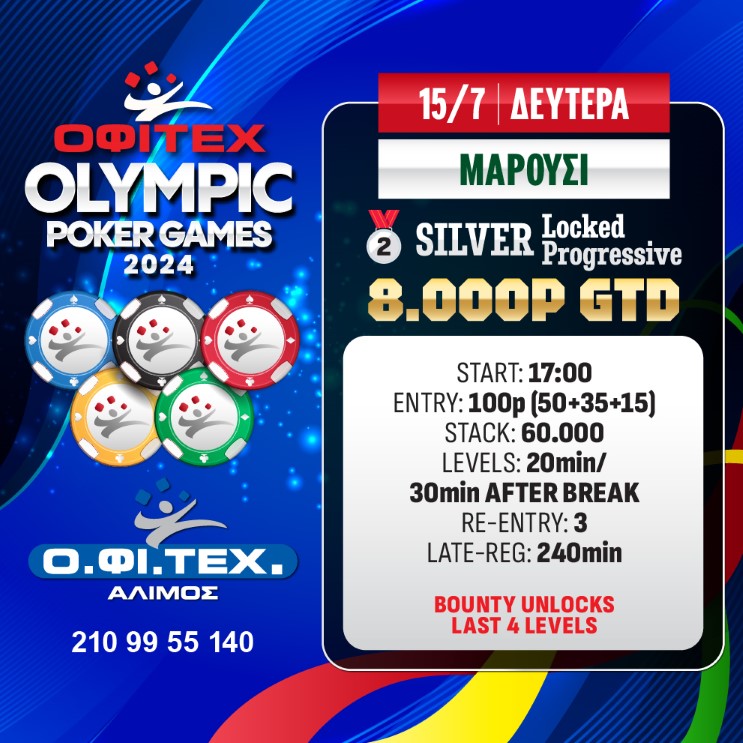 +tournament ticket 30p για τις θέσεις 1 και bubble (για τα satellites του Olympic Poker Games).