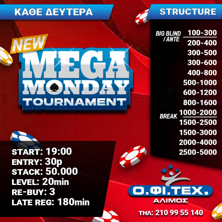 Blind levels: 20 λεπτά / 30 λεπτά μετά το break