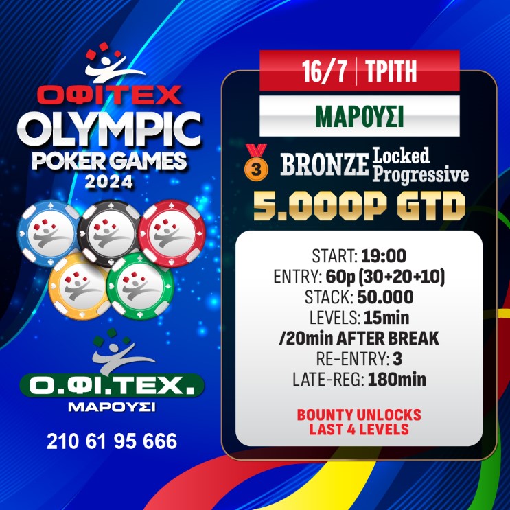 + tournament ticket 30p στo bubble (για τα satellites των Olympic Poker Games).