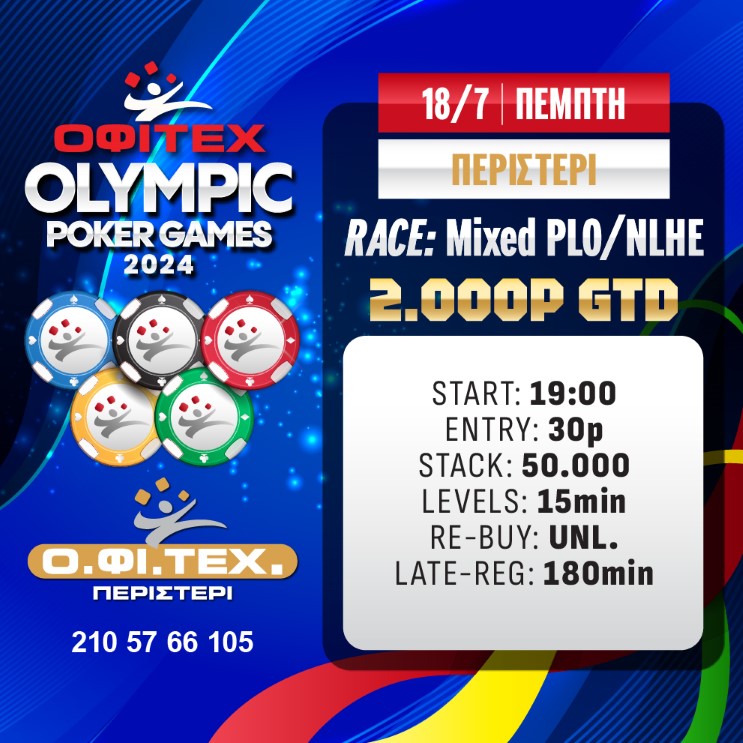 Στις 19:00 το Race: Mixed PLO/NLHE (2.000p gtd)