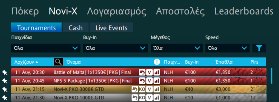 - Στις 21:15 το €40 NLH PKO με €3.000gtd