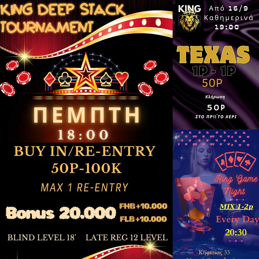 Πρεμιέρα σήμερα για ένα νέο deepstack τουρνουά με 100k + 20k αρχικό stack, max 1 re-entry και 18λεπτα levels!