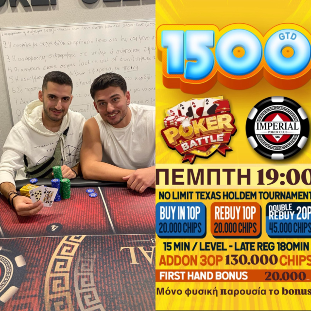 Σήμερα στις 19:00 σας περιμένει ένα 10p R/A NLHE με 15λεπτα levels και 1.500p gtd!