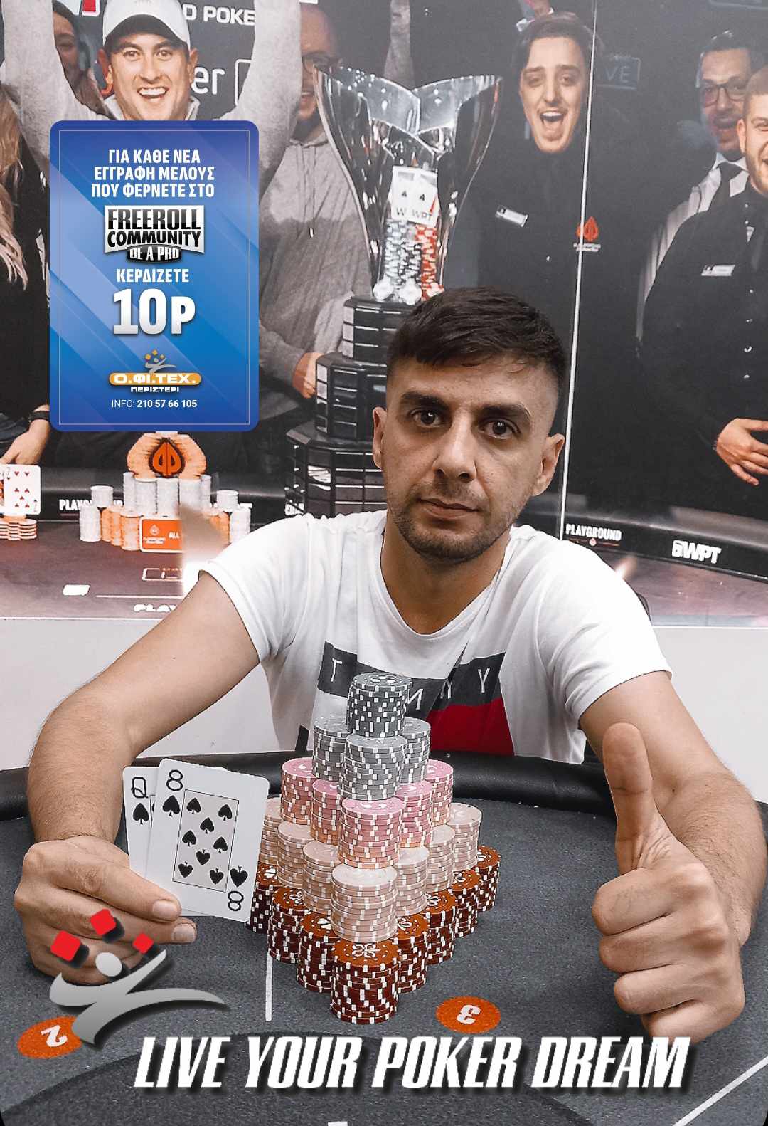 Πρωτιές εξάλλου για Διονύση Κότση (1.000p) και Γιάννη Βαβανό (850p) σε Μasters (56 entries) και Omaha Magic Tour (40 entries) αντίστοιχα, ενώ το freeroll του Περιστερίου κατέληξε στον “Υοung Edi” (φωτο).