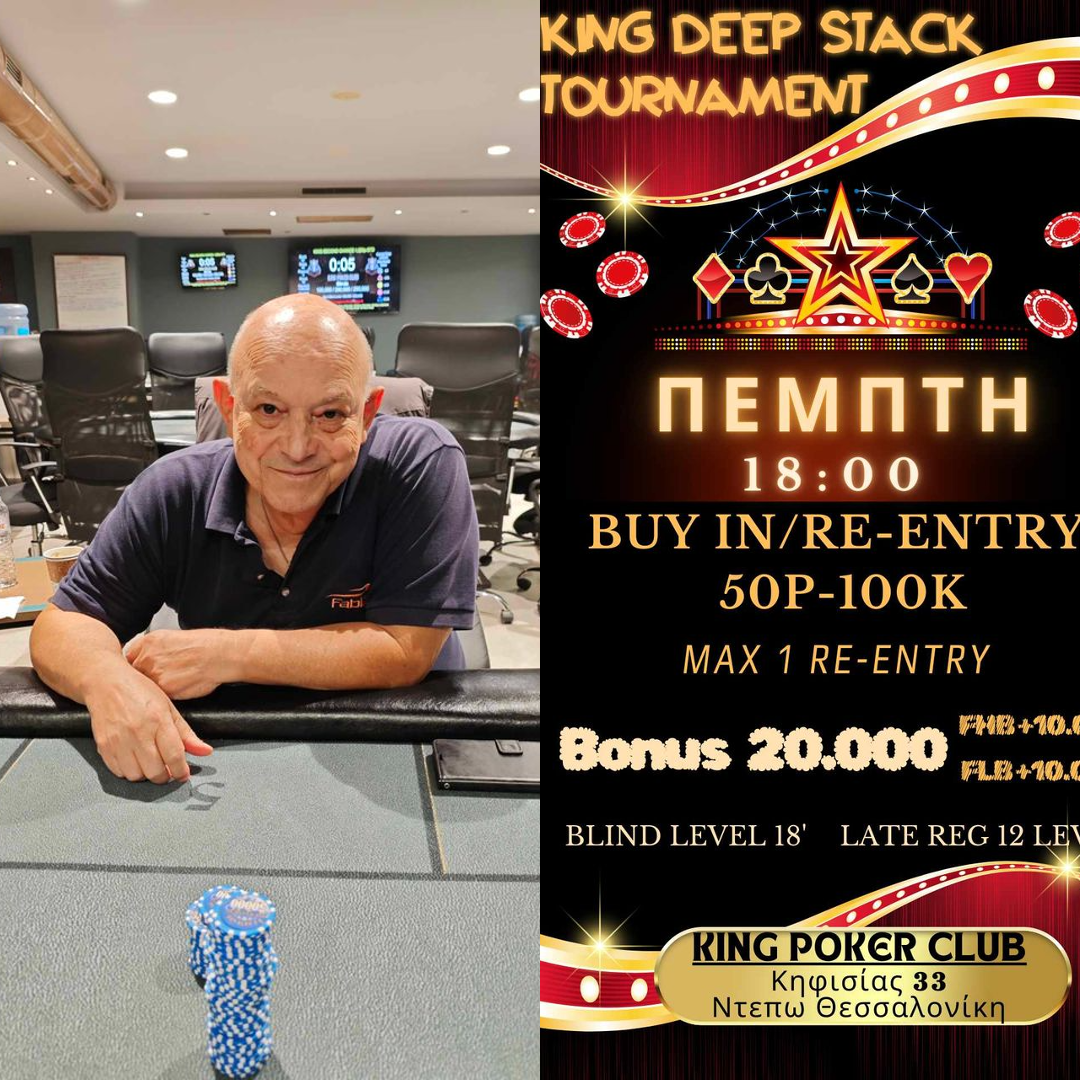 Σήμερα στις 18:00 σας περιμένει ένα deepstack τουρνουά με 100k + 20k αρχικό stack, max 1 re-entry και 18λεπτα levels!