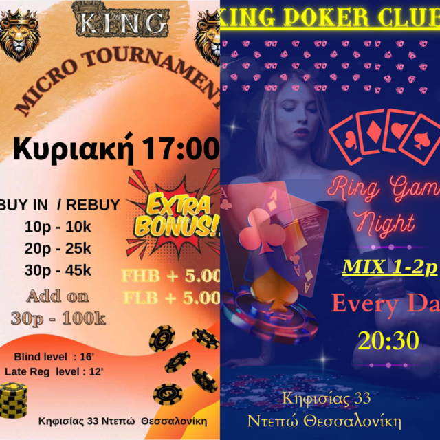 Mε τρεις επιλογές για buy-in/rebuy, 16λεπτα levels και ώρα έναρξης στις 17:00 θα λάβει χώρα το κυριακάτικο Micro, ενώ mix games όπως κάθε μέρα αρχίζουν από τις 20:30 κι έπειτα.